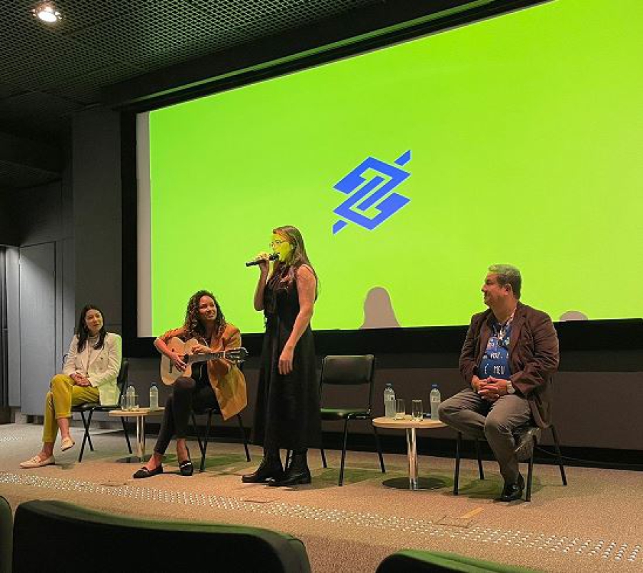 Participaram da conversa: Sérgio Ricardo Menezes (Serginho), funcionário do Banco do Brasil, pai de autista, e membro do grupo BB Azul; a musicoterapeuta Ana Carolina Steinkopf - criadora da metodologia “Uma Sinfonia Diferente” – Tecnologia Social certificada pela Fundação BB; a médica Angélica Ávila - especialista em Transtorno do Espectro Autista; e a jovem Sofia Rezende de Castro com espectro autista e artista que cantou músicas de sua autoria e encantou a todos.