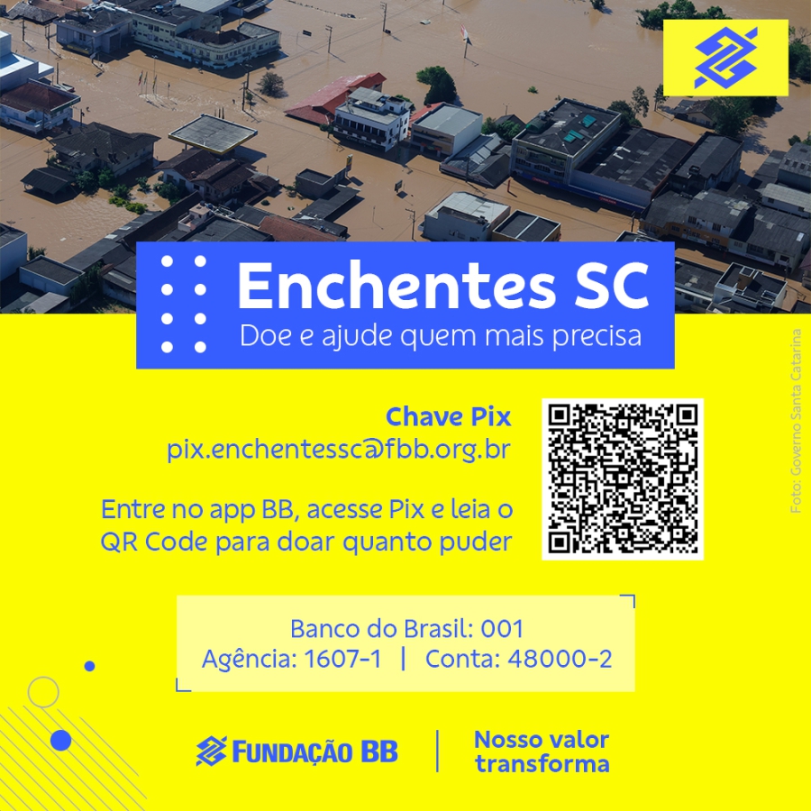 O Banco do Brasil e a Fundação BB lançam campanha em apoio às pessoas atingidas pelas fortes chuvas em Santa Catarina. A iniciativa integra o programa estruturado Ajuda Humanitária, destinado a ações de assistência em situações de calamidade e emergência. Segundo o balanço divulgado pela Defesa Civil nessa segunda-feira (09), mais de 20 mil pessoas foram diretamente afetadas e 82 cidades estão em emergência naquele estado.