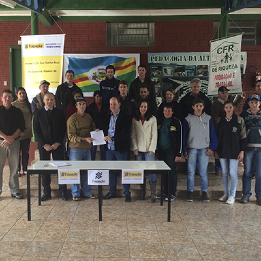 Em Riqueza (SC), a Fundação Banco do Brasil realiza investimento social de R$ 191 mil na ampliação da capacidade de atendimento da escola Casa Familiar Rural. Os recursos são para a reforma do refeitório e aquisição de máquinas, equipamentos, mobiliários e um veículo. A iniciativa, que envolve diretamente 150 pessoas, objetiva a capacitação de jovens como técnicos agrícolas e a inserção no mercado de trabalho.